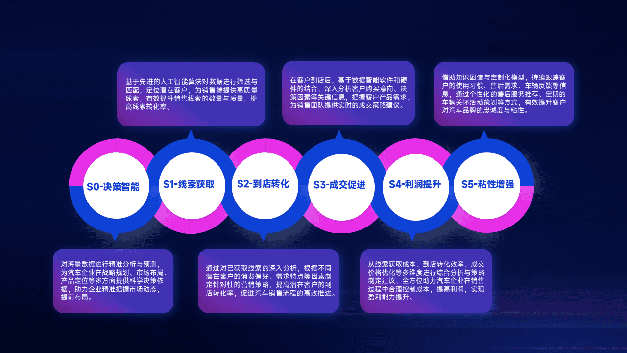 通过拓宽潜在客户来源、、、、优化线索分配并提高到店转化率,,,,以增强销售效率。。同时,,,,利用线索数据不断优化分析模型,,有效提升转化率,,扩大营销影响力。。